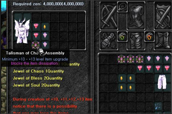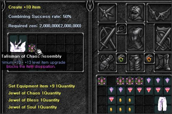 🌌 Talisman of Chaos Assembly(TCA) can be used when upgrading an item (must be over +9)