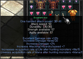 The excellent items are special types of items. Every normal Item has an excellent version you can obtain. Usually they have a really low drop rate so another way to get them is by going on golden invasions and killing a golden monster. It will drop a Box of Kundun which usually drops a random excellent item. The excellent item is slightly better than the normal one and also provides several very good excellent options: