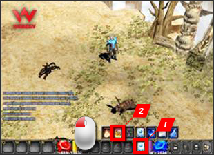 - 3. Click the 1, 2 by mouse left button to select a skill to use.